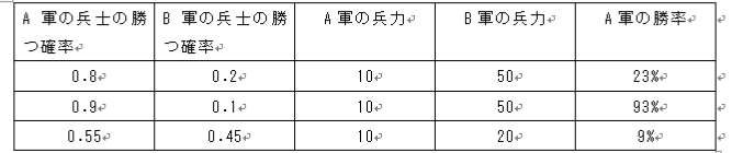そのころシステムダイナミクスの考え方についてブルーバックスという本を読んで興味を覚えたことがきっかけで、当時まだよちよちのパソコン(確かPC8000だったと記憶しています)をBasic言語で走らせて「テニスの技術が上下するとゲームに勝つ確率はどう変化するか」というシミュレーションをしたことがあります。簡単に言うと、プレイヤーA、Bが対戦するとき1ストロークごとにプレイヤーAの勝つ確率が0.55であるならば、プレイヤーBの勝つ確率は0.45となります。これら二人のプレイヤーの勝つ確率が変化するときゲームや試合に勝つ確率はどう変化するでしょう。